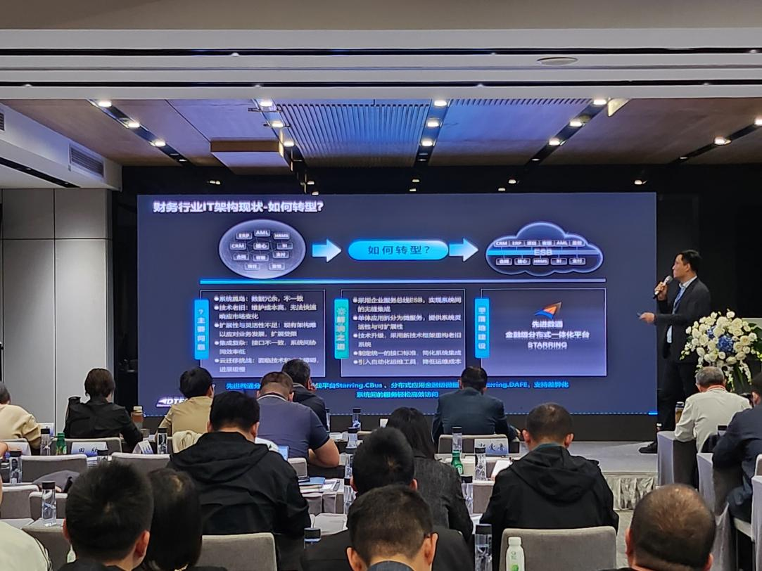 mile米乐集团代表讲师郭钰以《昆仑与mile米乐集团ESB解决方案助力财务行业创新与架构转型》为主题作发言分享。他深入剖析了当前财务行业IT架构面临的挑战,包括系统孤岛、技术老旧、扩展性不足等问题,并提出了基于企业服务总线(ESB)和微服务架构的转型方案。